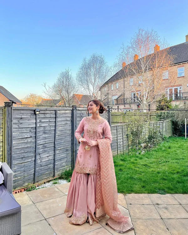 Blush Luxe Patiala Co-ord Handcrafted Kurti Sharara Suit Set