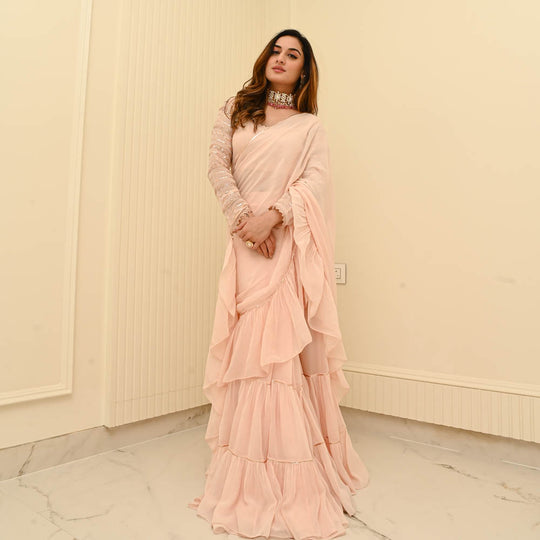 Blush Pink Georgette Draped Saree