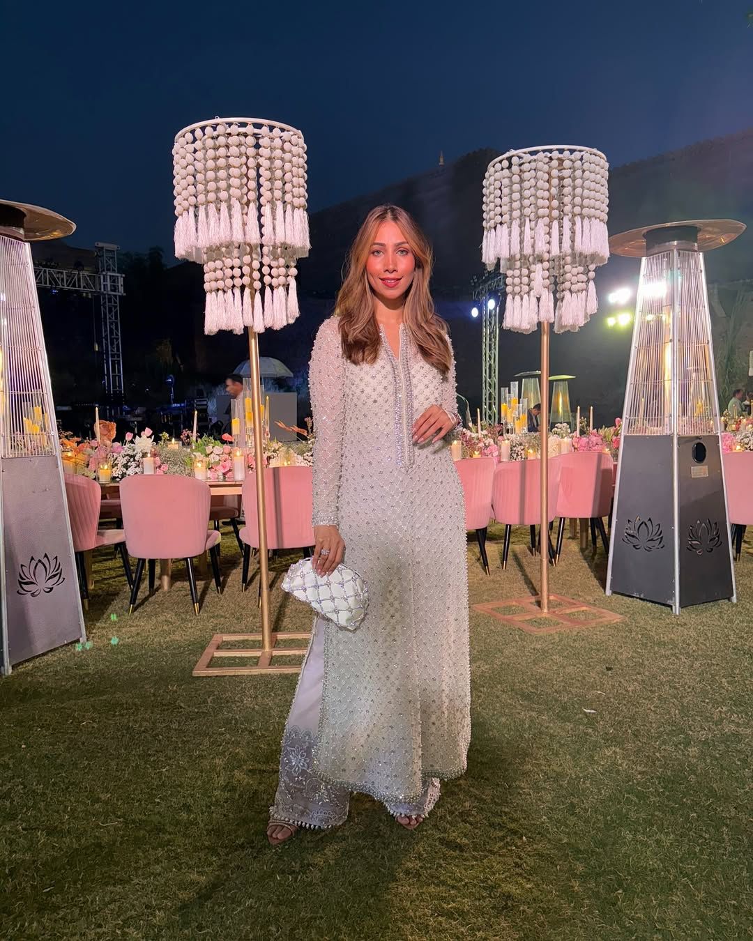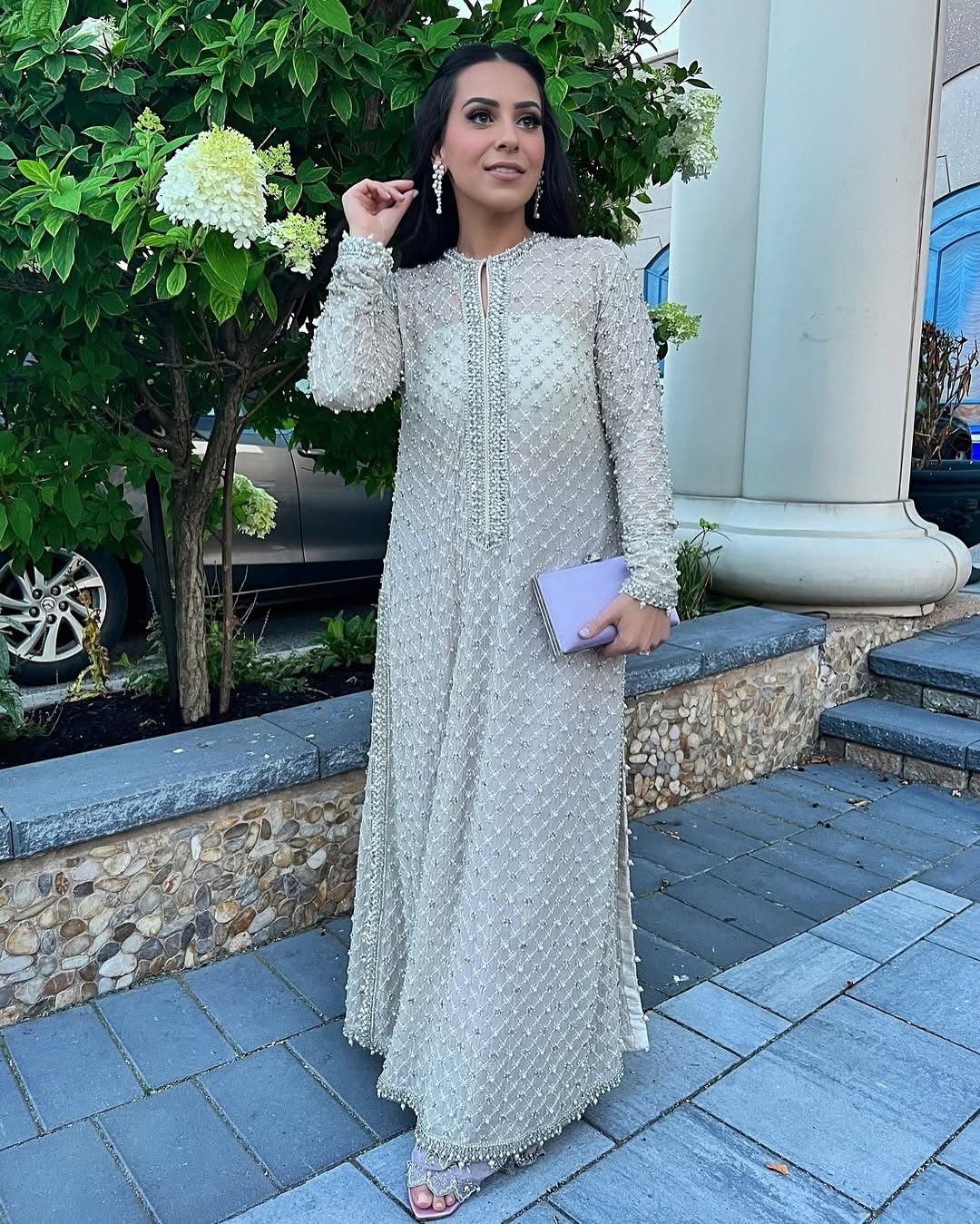 Embellished Beige Pakistani Style Long Kurta Set with Dupatta