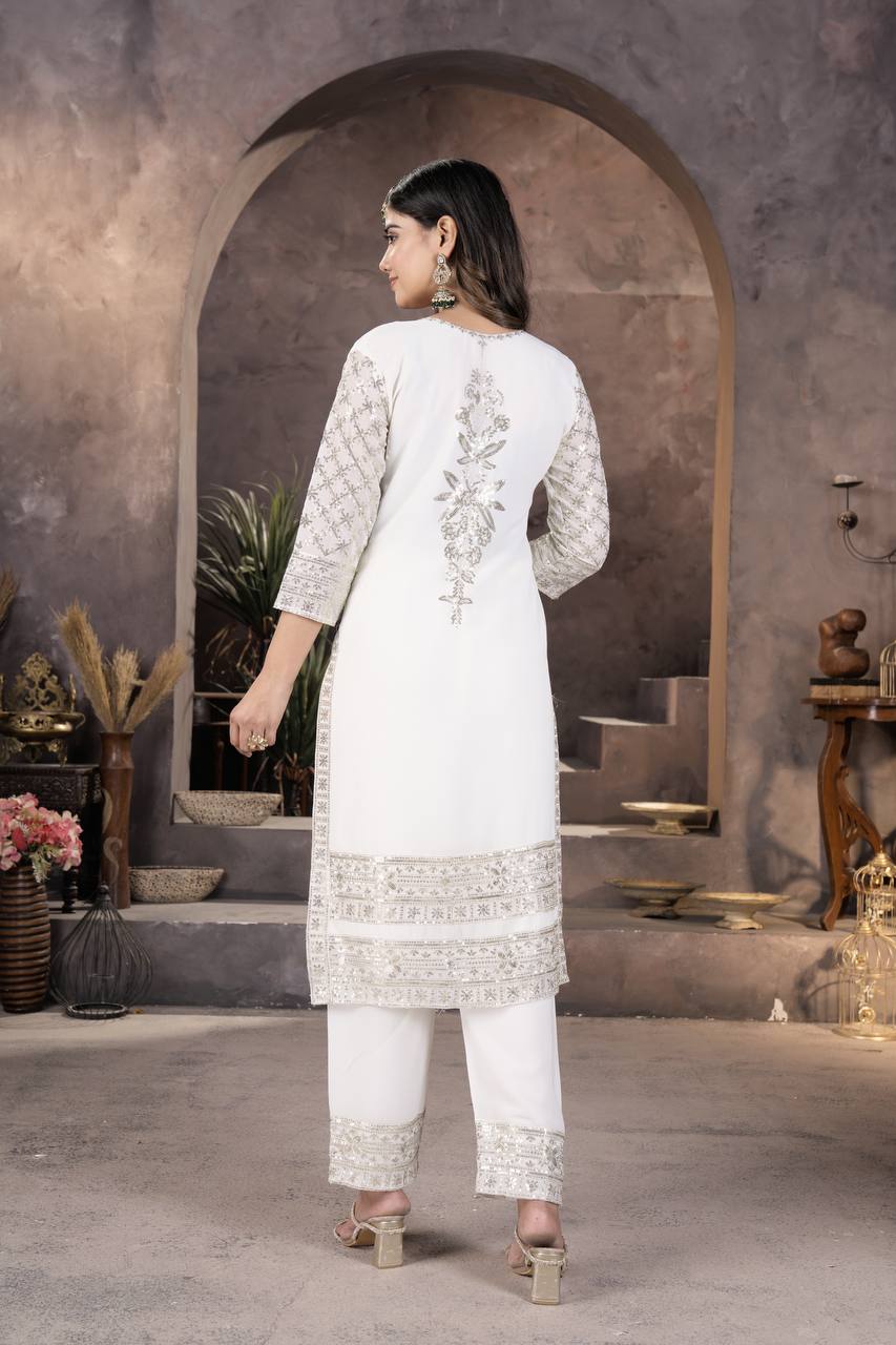 Fabric – FAUX GEORGETTE WITH EMBROIDERY SEQUENCE DESIGN LACE BORDER