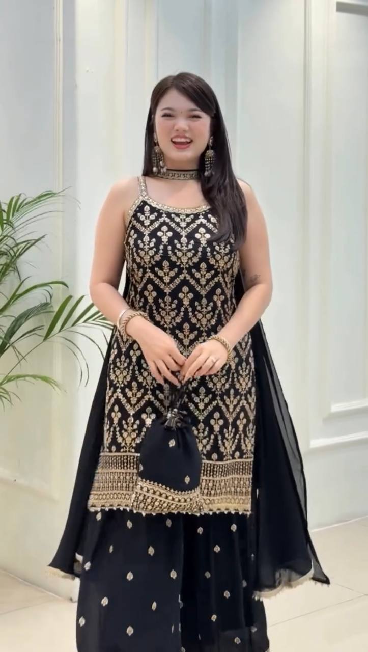 Work: Heavy Embroidery and Sequence Work with Hanging Latkan (Work in Only Front)