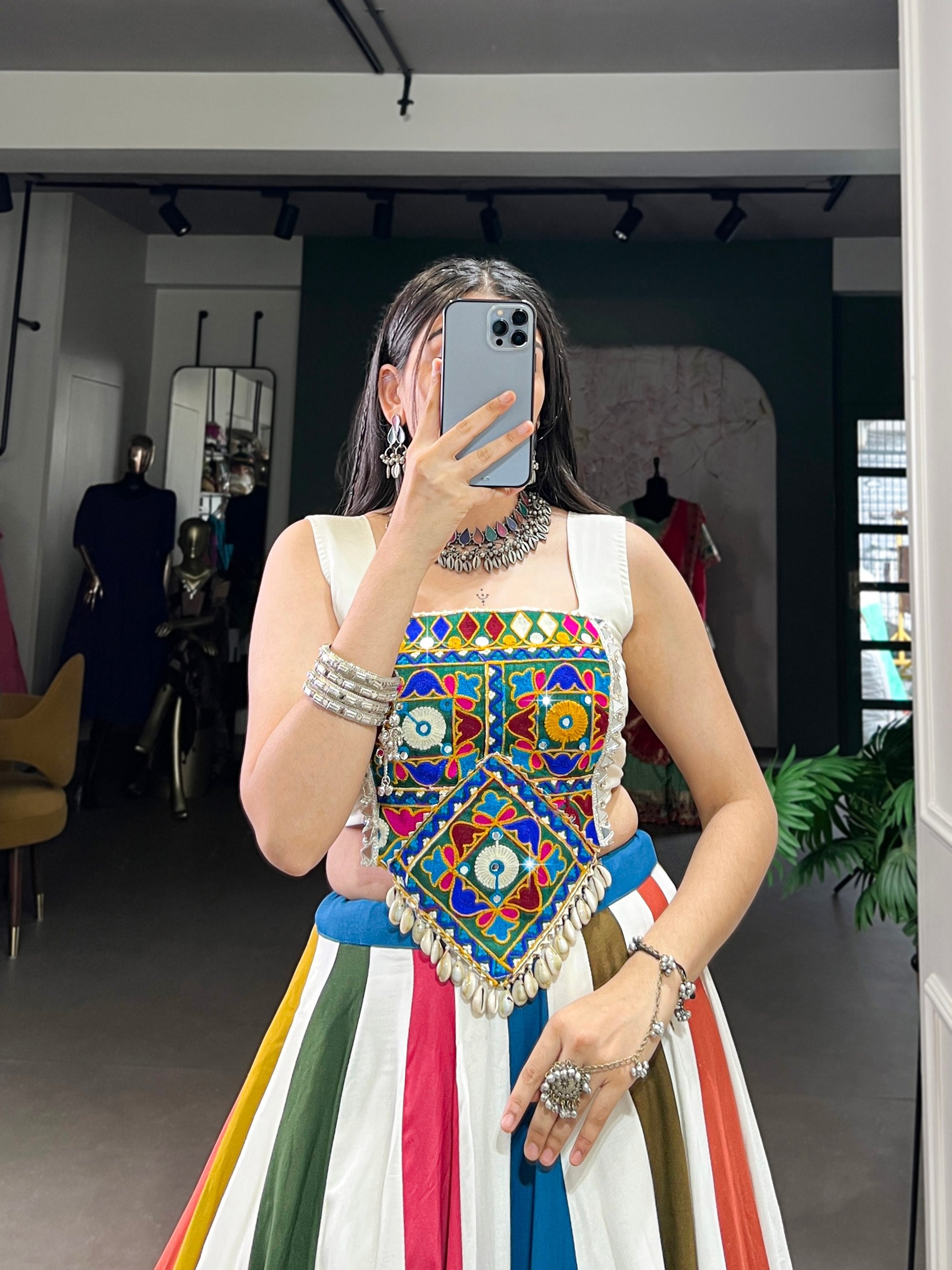 Navratri Bloom Multicolor Kutchi Work Rayon Lehenga