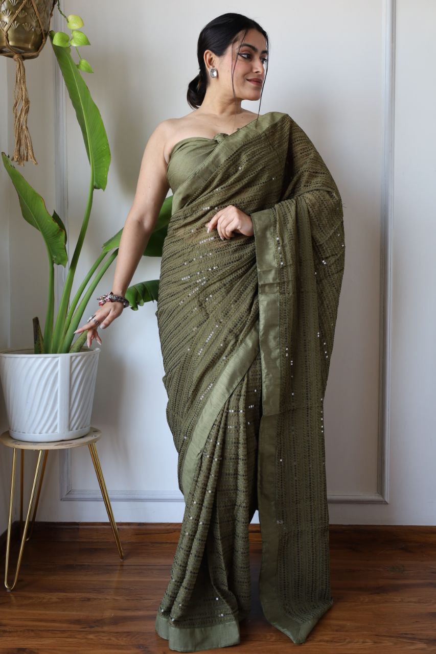 Work : Beautiful Designer Embroidery work of 5MM Sequence and Thread work of Laheriya Pattern.
