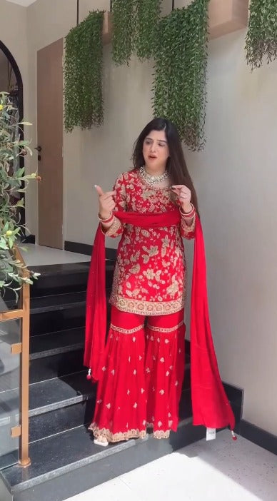 Regal Plum Elegance Handcrafted Embroidered Sharara Set