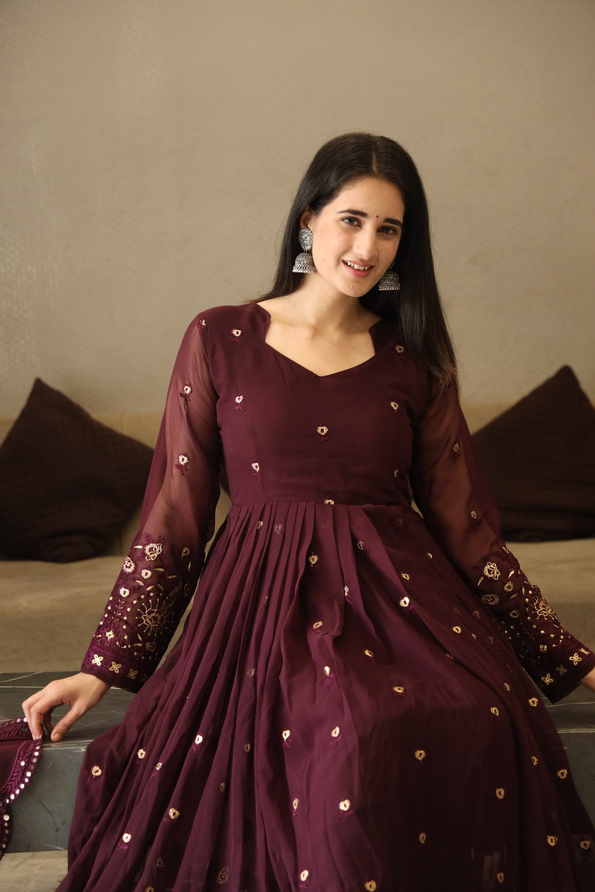 SONIA WINE COLOURED ANARKALI SUIT SET