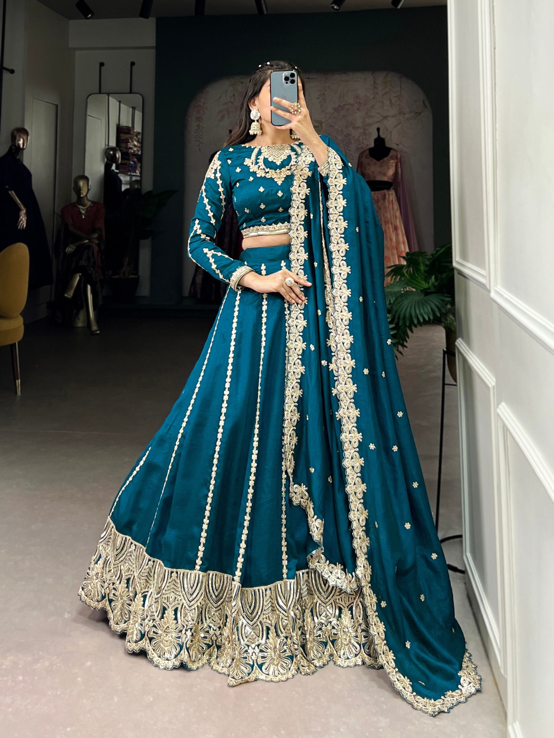 Fabric Details -Vichitra Silk With Sequins and Thread Embroidery Work
