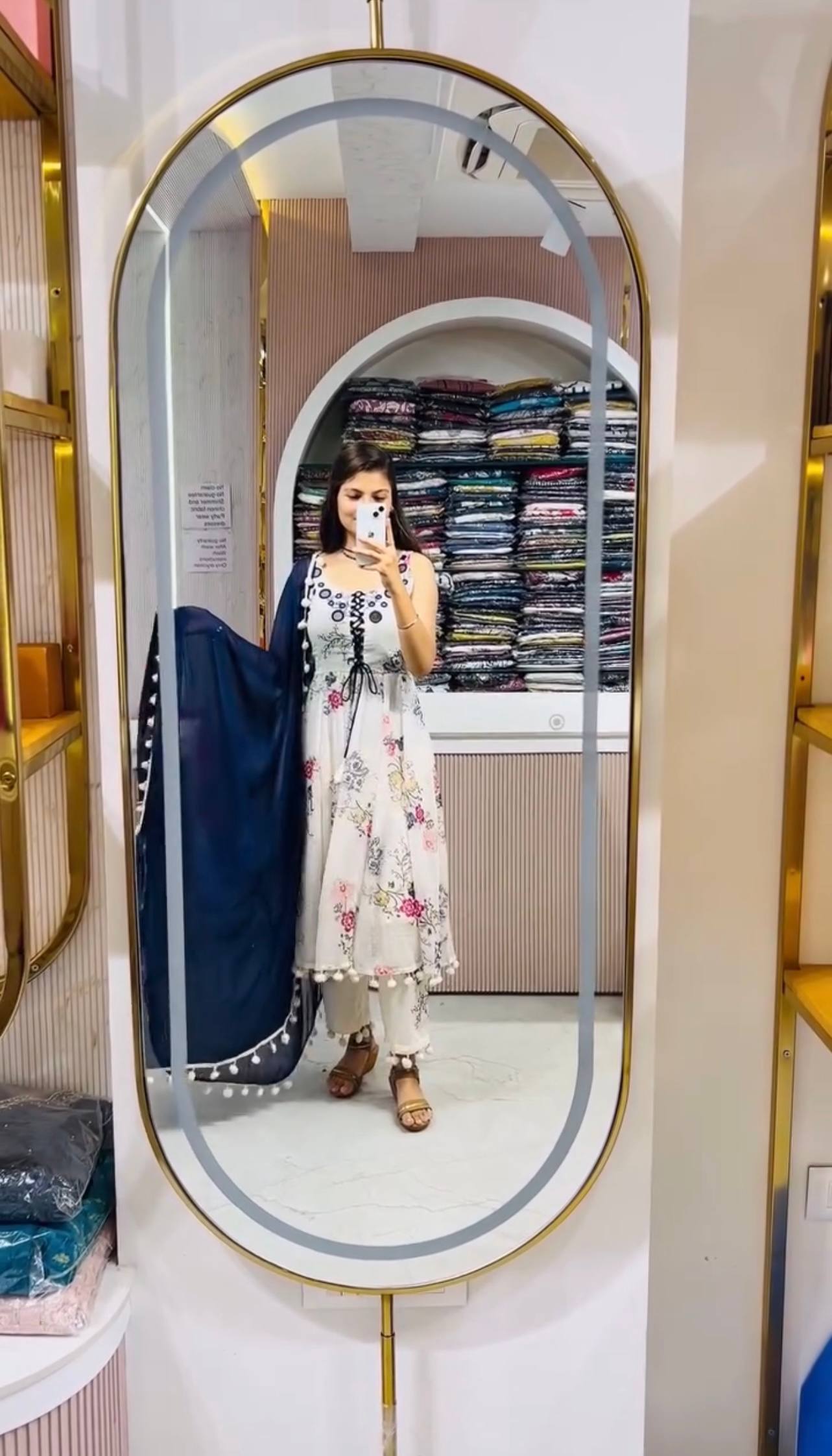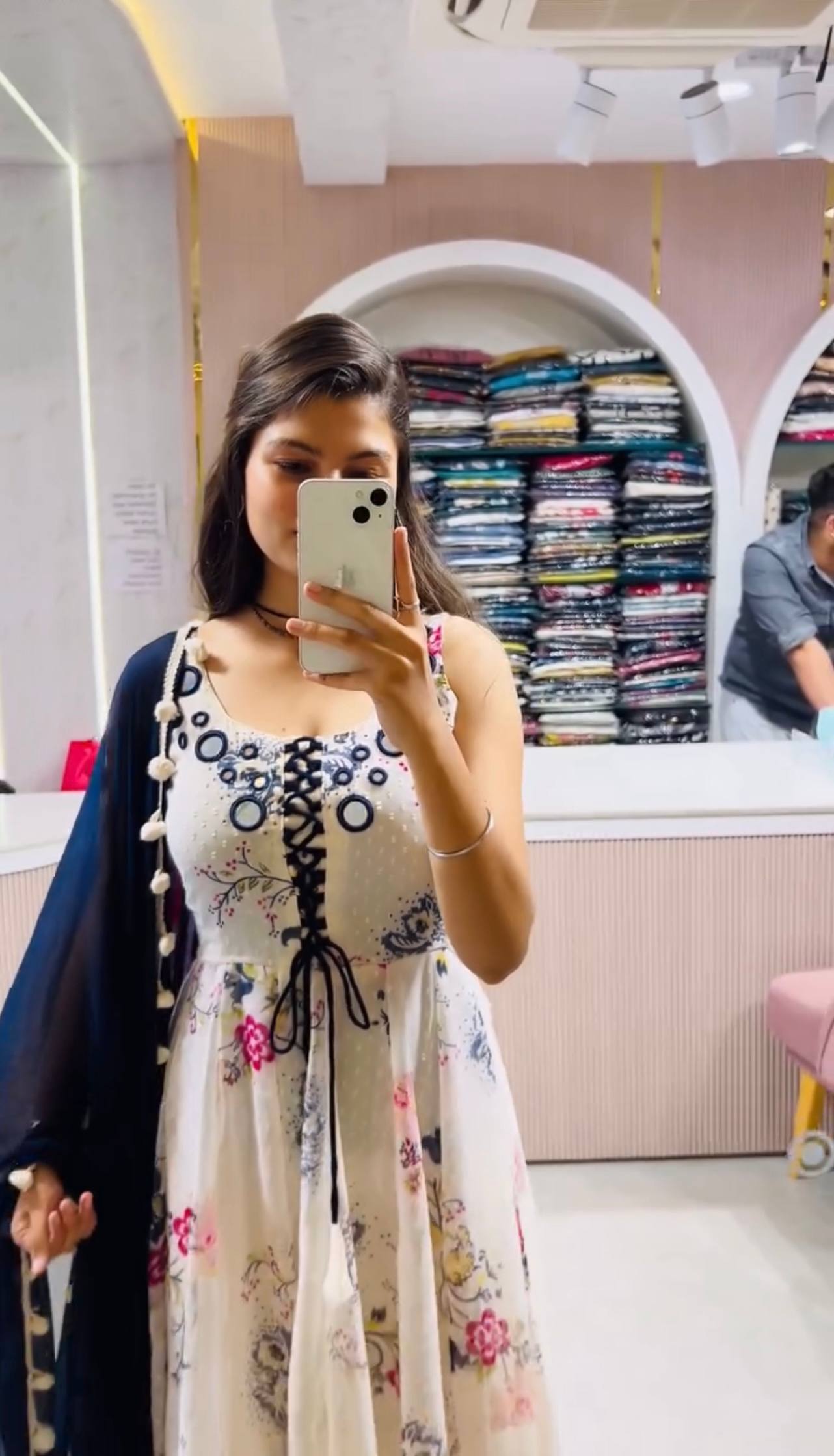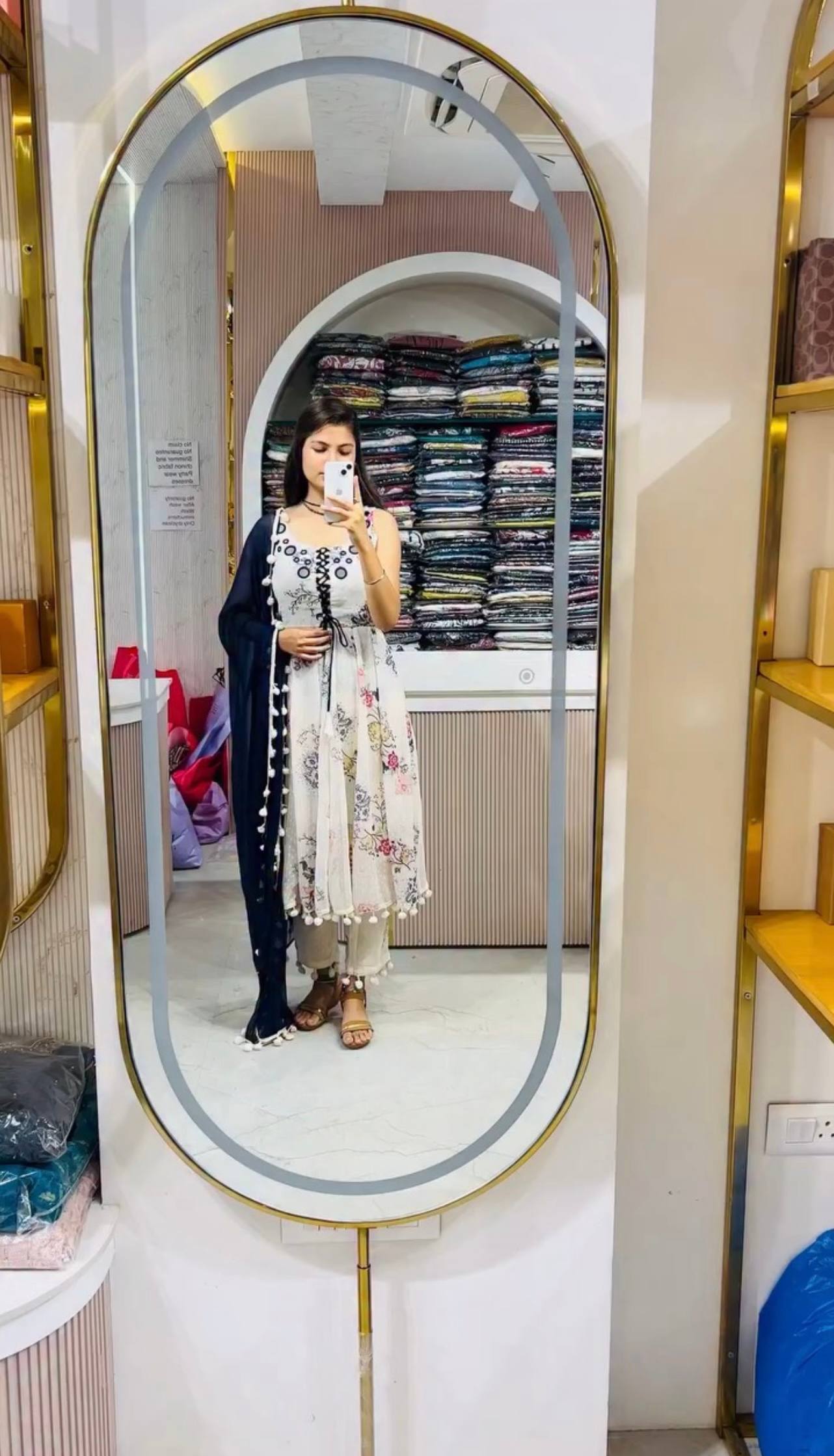 Work – Digital Print And Mirror Work With Pom Pom Lace